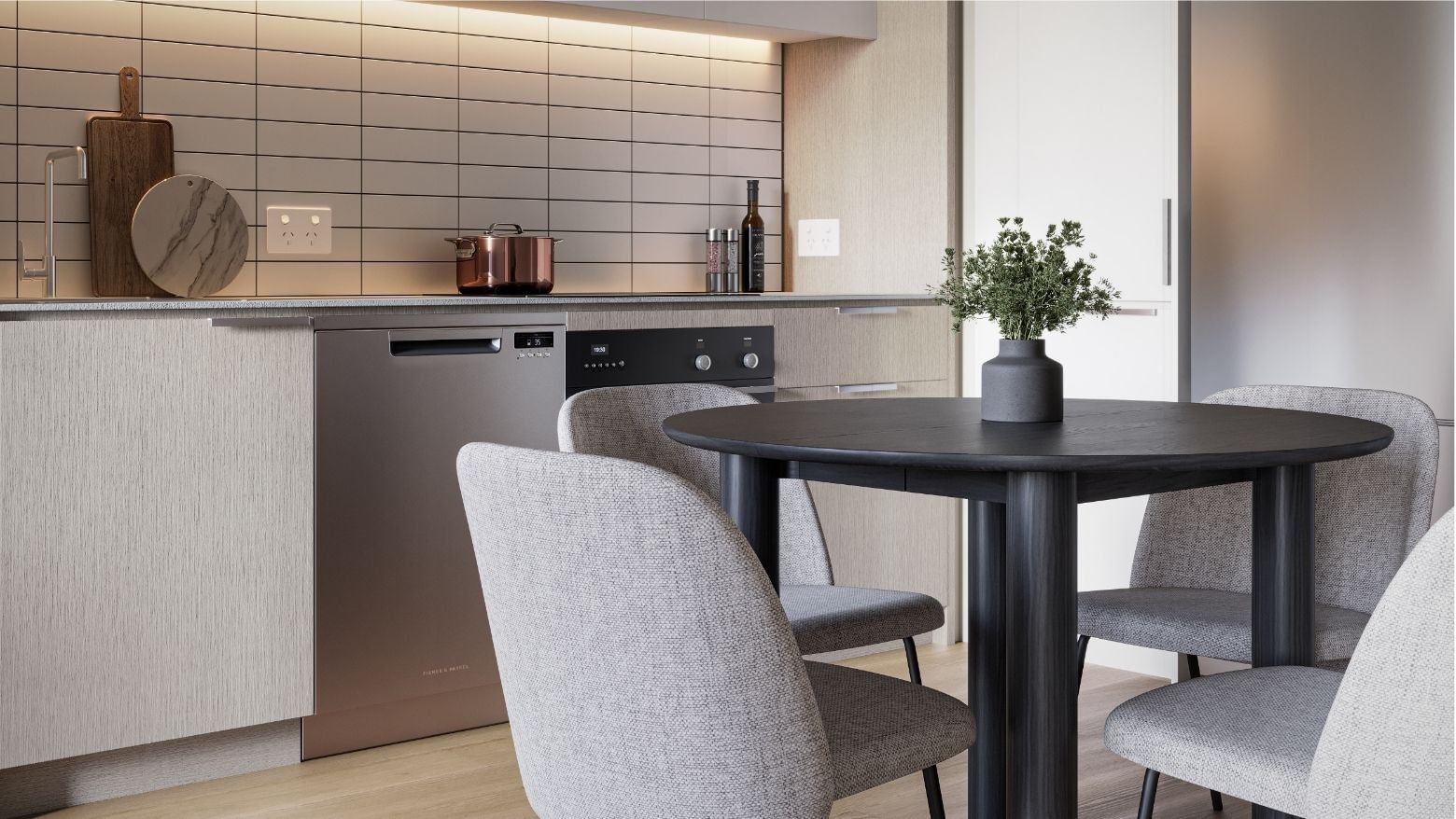 Images are artist's impression only. Apartment renders depict a 1 bedroom apartment on Level 18. Furniture and appliances shown are illustrative only and may vary from final product. View lines, fixtures and finishes may differ from that shown.