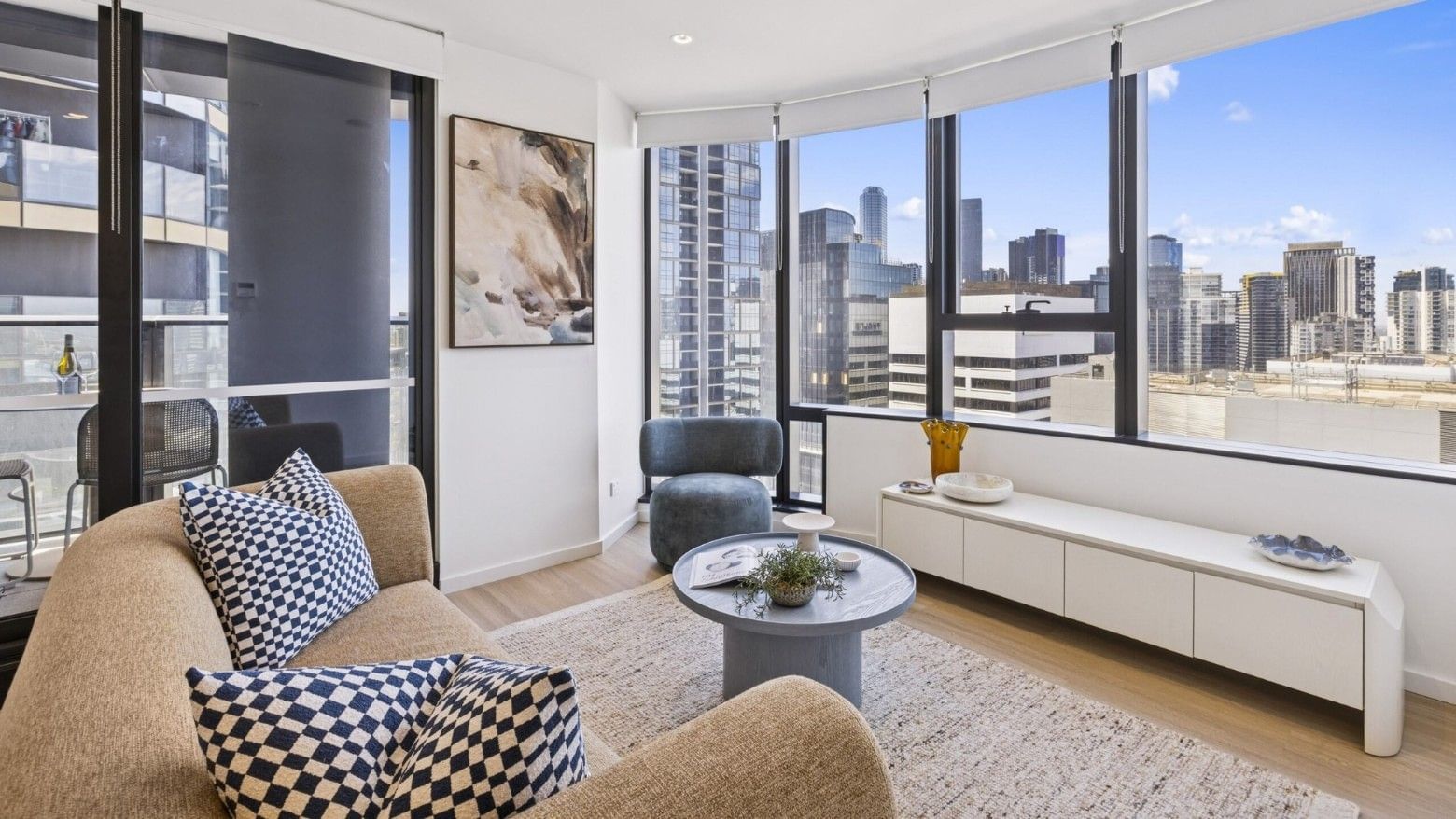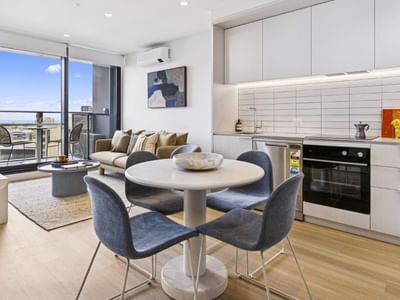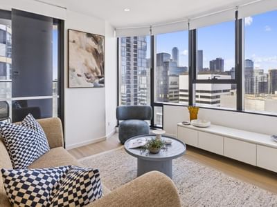 Disclaimer: Images of apartments show display apartments on Level 16. Furniture and appliances shown are indicative only and may vary from final product. View lines, fixtures and finishes may differ from that shown.